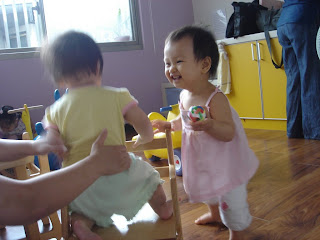 另外當孩子不乖的時候,不要生氣的說「不要打人」、「不要丟東西」,要知道我們大人激動會刺激小孩更興奮,就會更努力打人、丟東西來刺激我們。我們該做的事是轉移小孩的注意力。像之前班上有個小朋友一直想打人,老師就請他幫忙到旁邊擦桌子,擦了好多桌子之後,小朋友已經不想打人了,老師因此有機會可以跟小朋友說謝謝,這樣小朋友也會很開心。(我晚上和老公分享到這點時,我們兩個都嘆息說我們要再努力。畢竟有時候小孩不守規矩時,要壓下自己的怒氣真的是很困難,當爸媽真不容易,一切都要從新學習、從新磨練。)